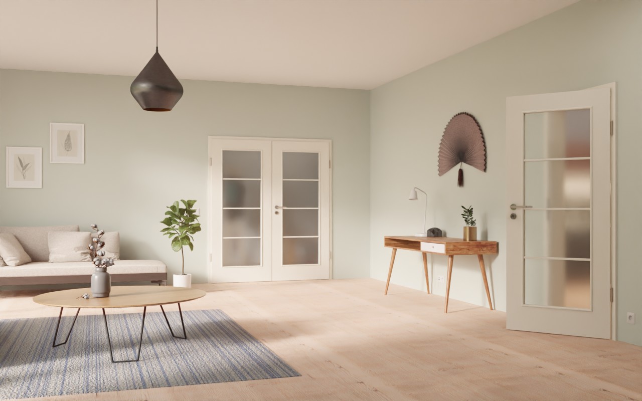Dzięki praktycznym wycięciom wpuszczającym światło dwuskrzydłowe drzwi firmy Garant zapewniają dodatkowe oświetlenie w pomieszczeniach.