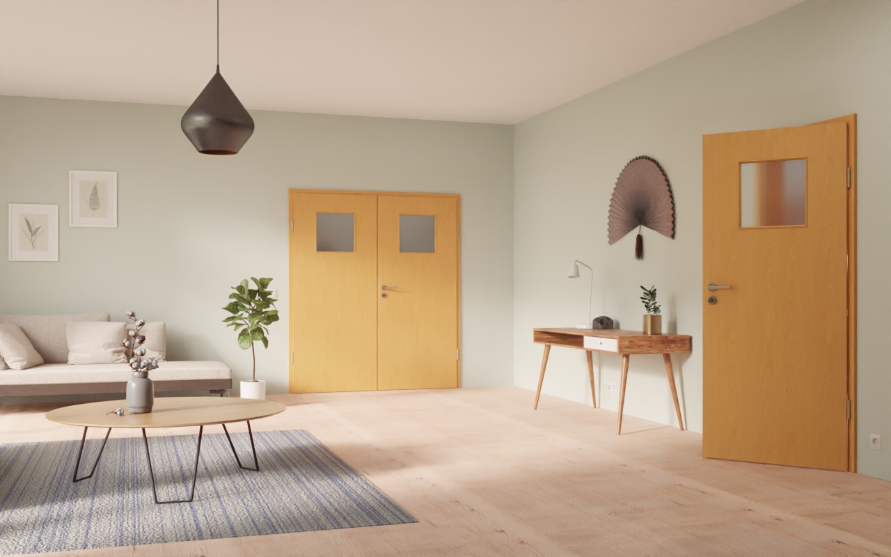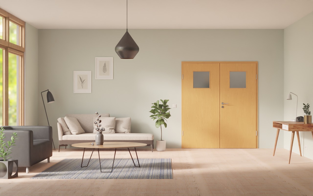 Piękne podwójne drzwi wewnętrzne z wytrzymałą powierzchnią HPL: