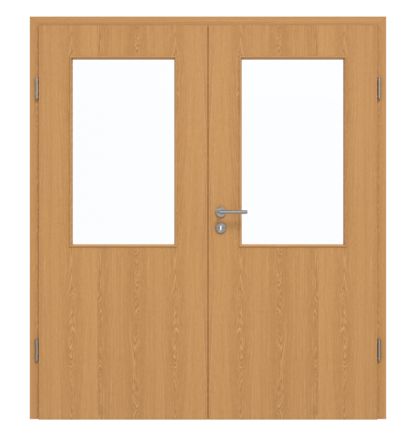 Testowane w grupie obciążeniowej M, drzwi podwójne mogą być stosowane zarówno w pomieszczeniach prywatnych, jak i biurowych. Ich rdzeń wykonany jest z pełnej płyty wiórowej. Ościeżnica, zawiasy i zamek są już wliczone w cenę.