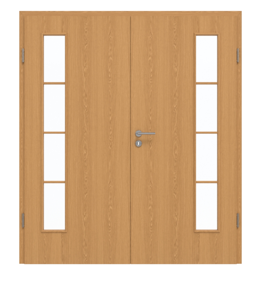 Drzwi dwuskrzydłowe, przetestowane w grupie obciążeniowej M , nadają się zarówno do pomieszczeń prywatnych, jak i biurowych. W zasadzie składa się z płyty wiórowej. W cenie zawarte są nie tylko oba skrzydła drzwiowe, ale także ościeżnica, zawiasy oraz zamek z kluczem.
