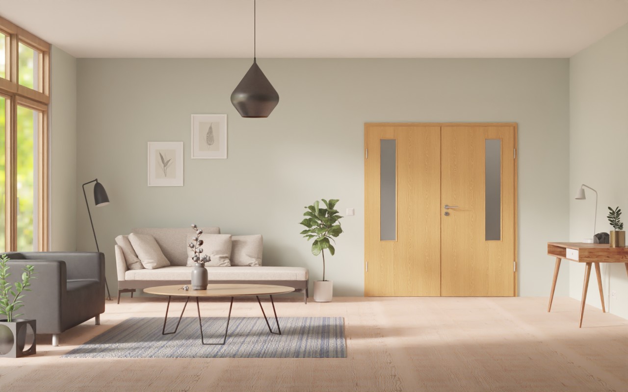 Atrakcyjne drzwi podwójne z odporną na brud okładziną HPL: