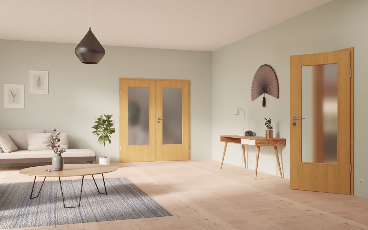 Stylowe podwójne drzwi wewnętrzne z odporną okleiną HPL: