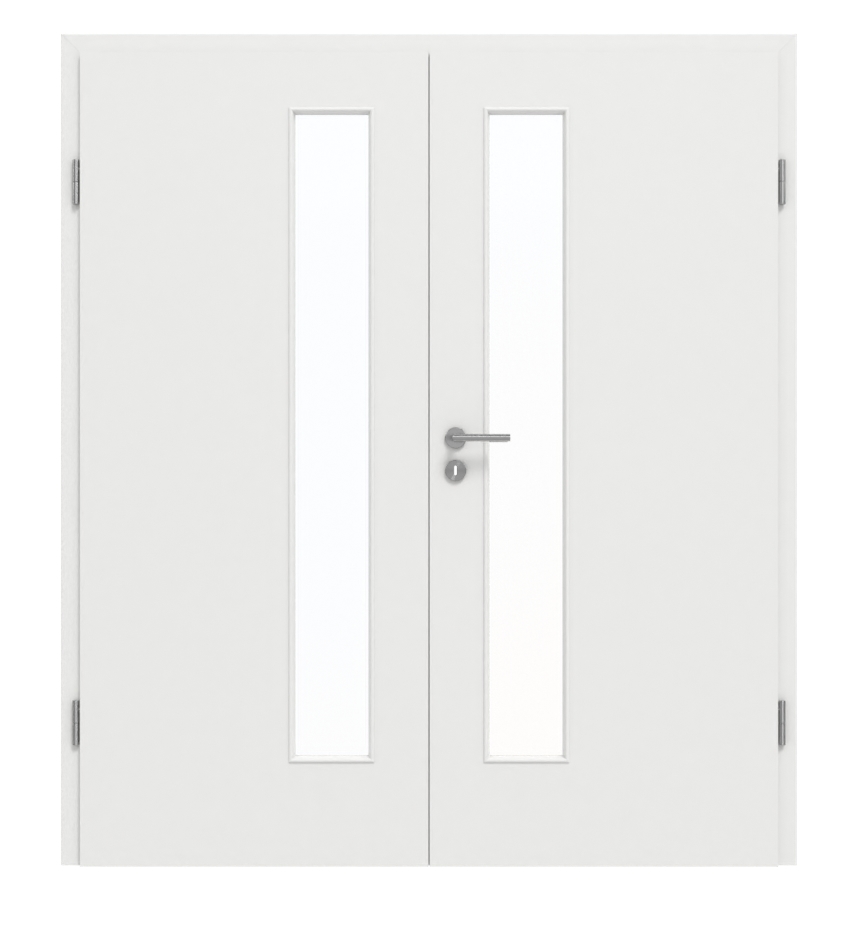 Drzwi dwuskrzydłowe, przetestowane w klasie obciążenia M , mogą być stosowane zarówno w pomieszczeniach prywatnych, jak i biurowych. Ich warstwa środkowa jest wykonana z pełnej płyty wiórowej. W cenie zawarte są oba skrzydła drzwiowe, odpowiednia ościeżnica, zawiasy oraz zamek z kluczem wielobocznym.