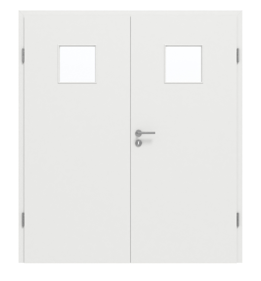 Dzięki rdzeniowi z litej płyty wiórowej te podwójne drzwi nadają się zarówno do pomieszczeń prywatnych, jak i biurowych. Została przetestowana w klasie obciążenia M. Oprócz skrzydła ruchomego i stałego w cenę wliczone są również ościeżnica, zawiasy oraz zamek z kluczem.