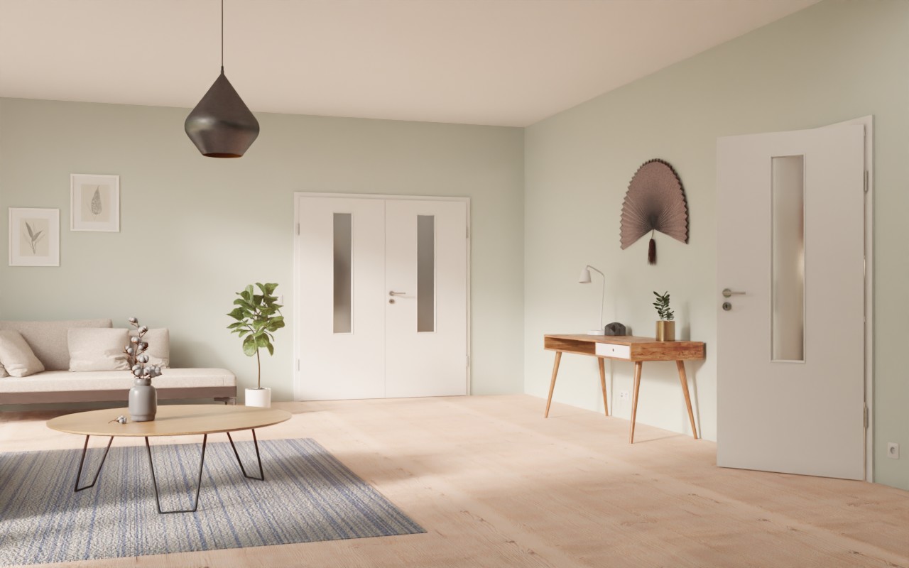 Nowa atrakcja w Państwa placówce: Drzwi dwuskrzydłowe z LA-5 na środku z matowym białym lakierem 9016 firmy Garant łączą w sobie harmonijny design z najwyższą funkcjonalnością.