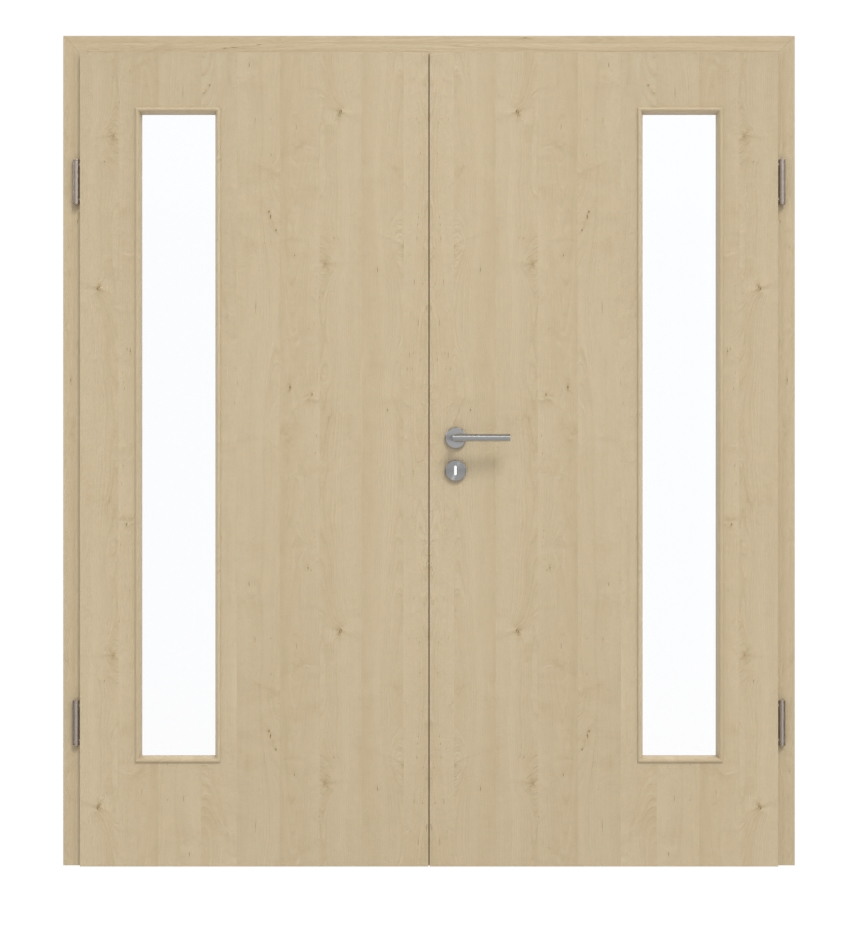 Dzięki warstwie środkowej z płyty wiórowej oraz certyfikacji w grupie obciążeniowej M te dwuskrzydłowe drzwi nadają się zarówno do użytku prywatnego, jak i biurowego. Cena obejmuje skrzydła ruchome i stałe, ościeżnicę, zawiasy oraz zamek z kluczem.