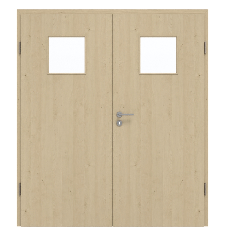 Kwadratowe wycięcie na szybę w górnej części drzwi zapewnia nieco więcej światła w pomieszczeniu. Wzór Natura Klon zachwyca naturalnym wyglądem drewna o podłużnych słojach, charakteryzującym się jasnymi i delikatnymi wzorami. Oprócz atrakcyjnego wyglądu ta łatwa w pielęgnacji warstwa wierzchnia wyróżnia się również wysoką wytrzymałością.