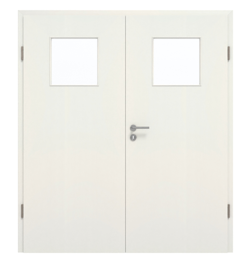 Drzwi dwuskrzydłowe mogą być stosowane zarówno w pomieszczeniach prywatnych, jak i biurowych. Jest wykonana z płyty wiórowej i posiada certyfikat klasy wytrzymałości M. Oprócz skrzydeł drzwiowych w zestawie znajdują się również ościeżnica, odpowiednie zawiasy i zamek na klucz.