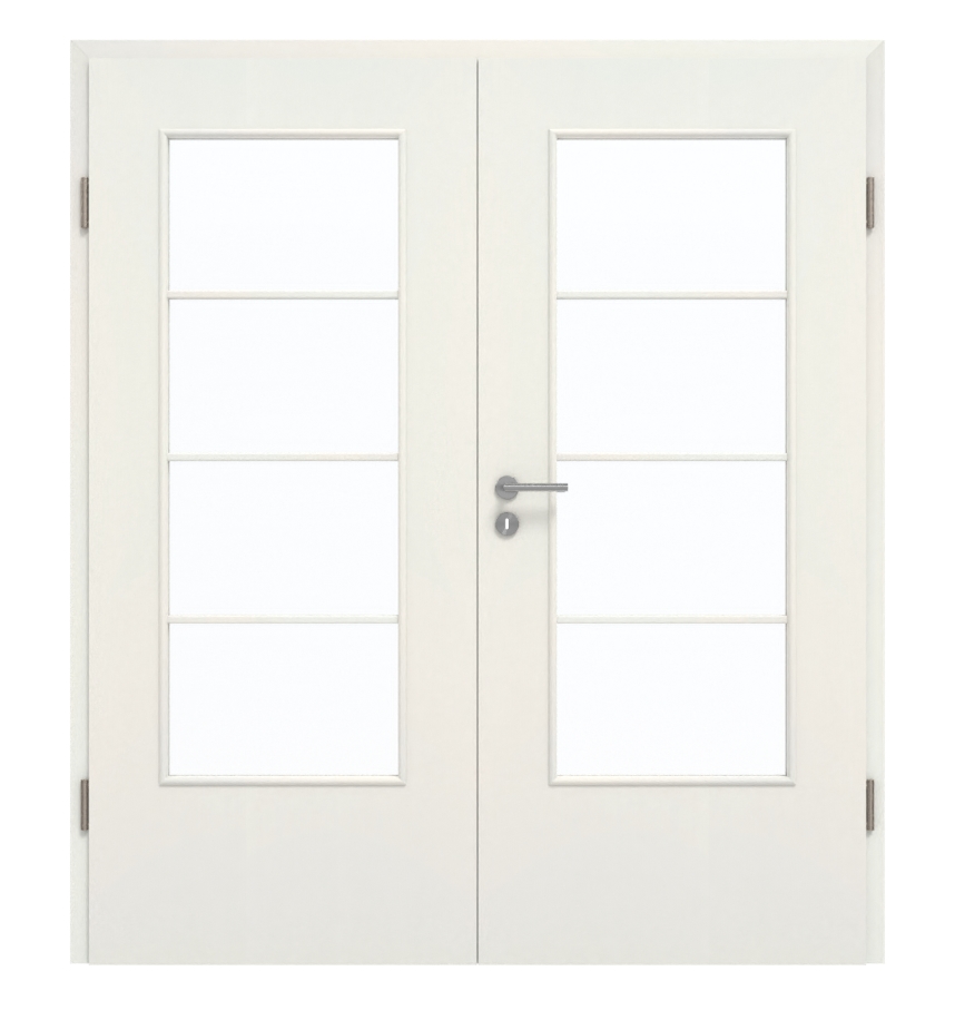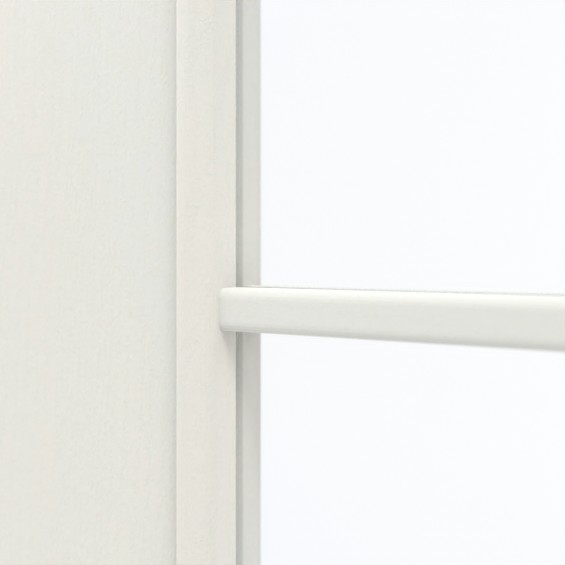 Znaczną część każdego skrzydła drzwi zajmuje prostokątne wycięcie na szybę. Pionowe szprosy nadają drzwiom nowoczesny i prosty wygląd. Dekor HPL biel ze strukturą Premium zapewnia jednolity odcień z wyczuwalną strukturą. Wytrzymała warstwa wierzchnia bez problemu wytrzymuje obciążenia mechaniczne. Ponadto jest bardzo łatwa w czyszczeniu.