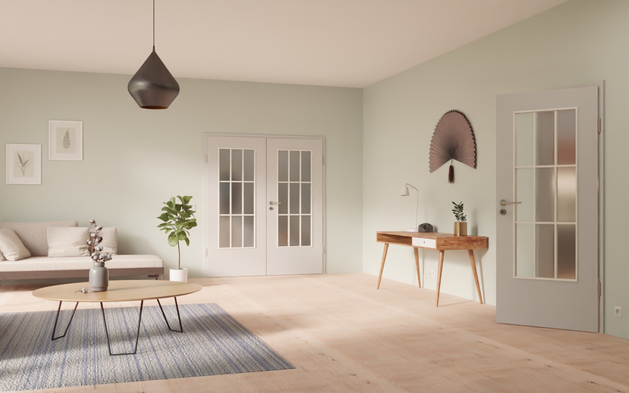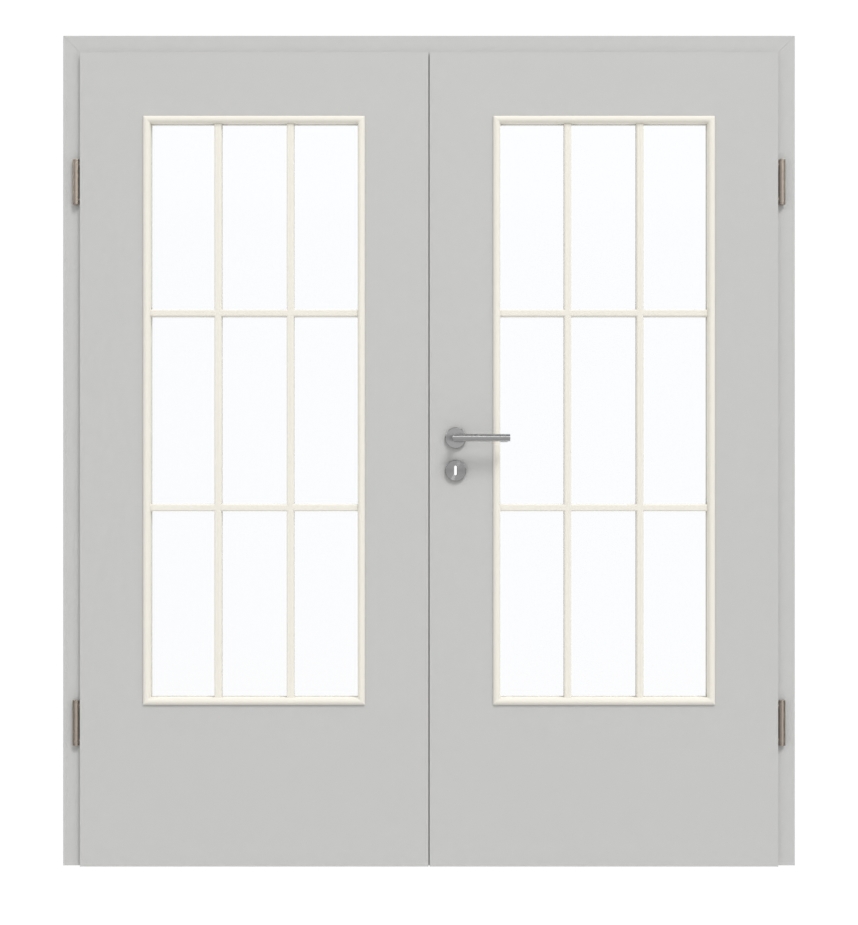 Idealny wybór do dużych pomieszczeń: Drzwi dwuskrzydłowe LA-DIN szprosy SP2 D92-60 Dove Grey firmy Garant przekonują atrakcyjnym designem.