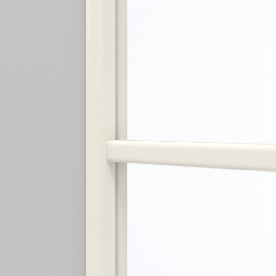 Prostokątny wycięty fragment stanowi centralny element projektu skrzydła drzwi. Proste pręty dzielą go na dziewięć równych części. Wzór Dove Grey zachwyca subtelnym, jasnoszarym odcieniem. Ten dekoracyjny laminat jest odporny na zabrudzenia, zarysowania i uderzenia.
