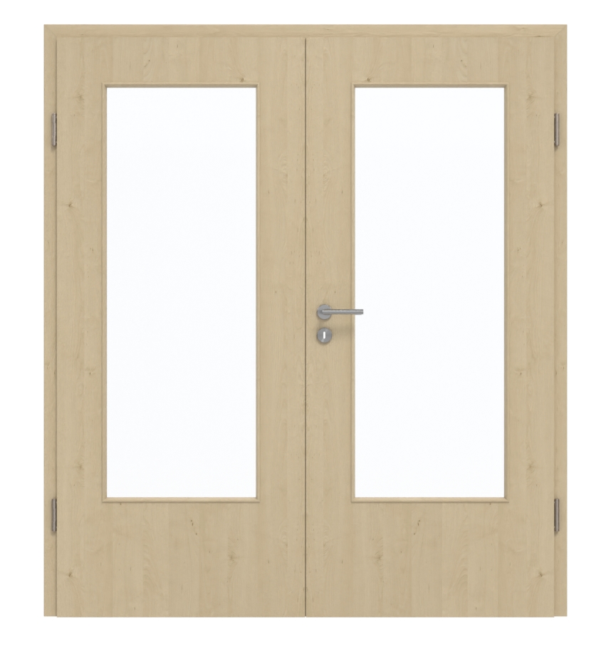 Rdzeń drzwi podwójnych jest wykonany z pełnej płyty wiórowej. Została przetestowana w grupie obciążenia M i dlatego może być stosowana zarówno w budynkach mieszkalnych, jak i biurowych. Podana cena obejmuje oba skrzydła drzwiowe, odpowiednią ościeżnicę, zamek bębenkowy oraz zawiasy.
