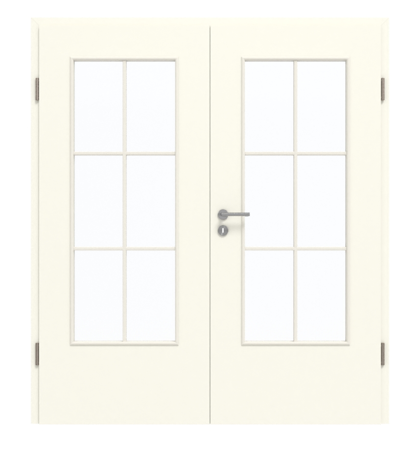 Dzięki dużym, prostokątnym przeszkleniom oba skrzydła drzwi przepuszczają dużo światła. Są one elegancko podkreślone przez delikatne pędy . Wykończenie HPL Platinweißokazuje się niezwykle uniwersalne, a jego matowa struktura zapewnia przyjemną atmosferę w pomieszczeniu. Oprócz atrakcyjnego wyglądu ta łatwa w pielęgnacji warstwa wierzchnia przekonuje również swoją wysoką wytrzymałością.