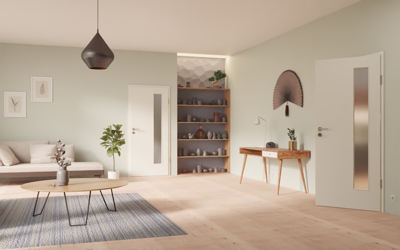 Zapraszające drzwi wewnętrzne w dekorze HPL 0135-60 Rain z stylowym przeszkleniem: