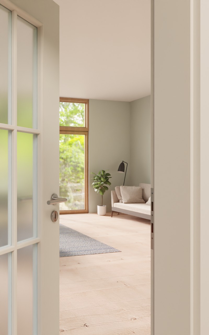 Skrzydło drzwiowe zawdzięcza swoją stabilność warstwie środkowej z płyty wiórowej oraz ramie z płyty MDF. Spełnia wymagania grupy obciążenia M i dlatego nadaje się zarówno do użytku prywatnego, jak i biurowego.