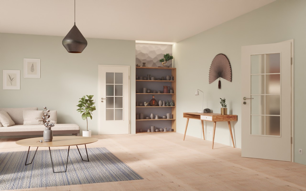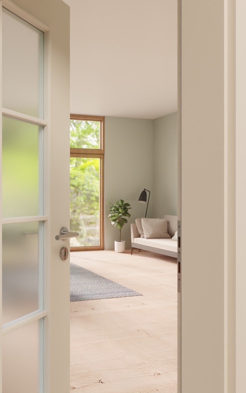 Atrakcyjne drzwi pokojowe w dekorze HPL 0140-60 Dawn z eleganckim przeszkleniem: