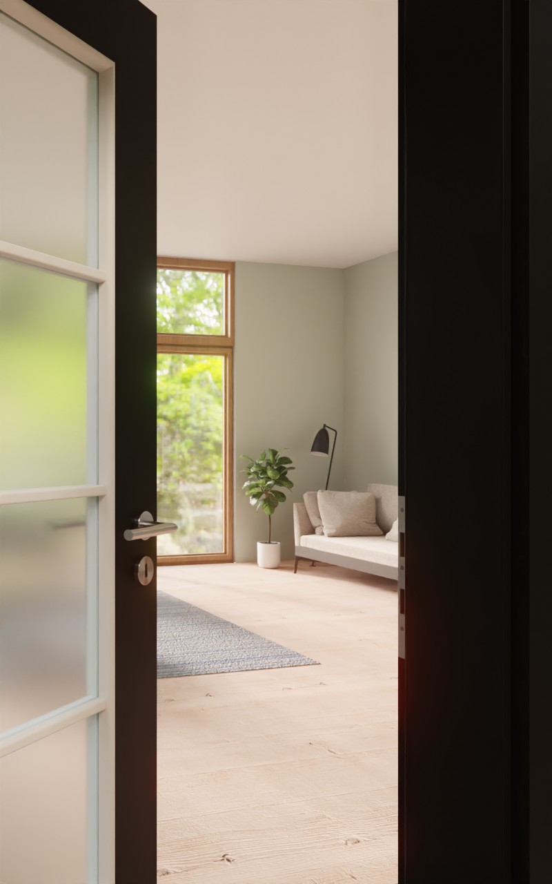 Ponadczasowe drzwi wewnętrzne w dekorze HPL 0901-60 Black z eleganckim przeszkleniem: