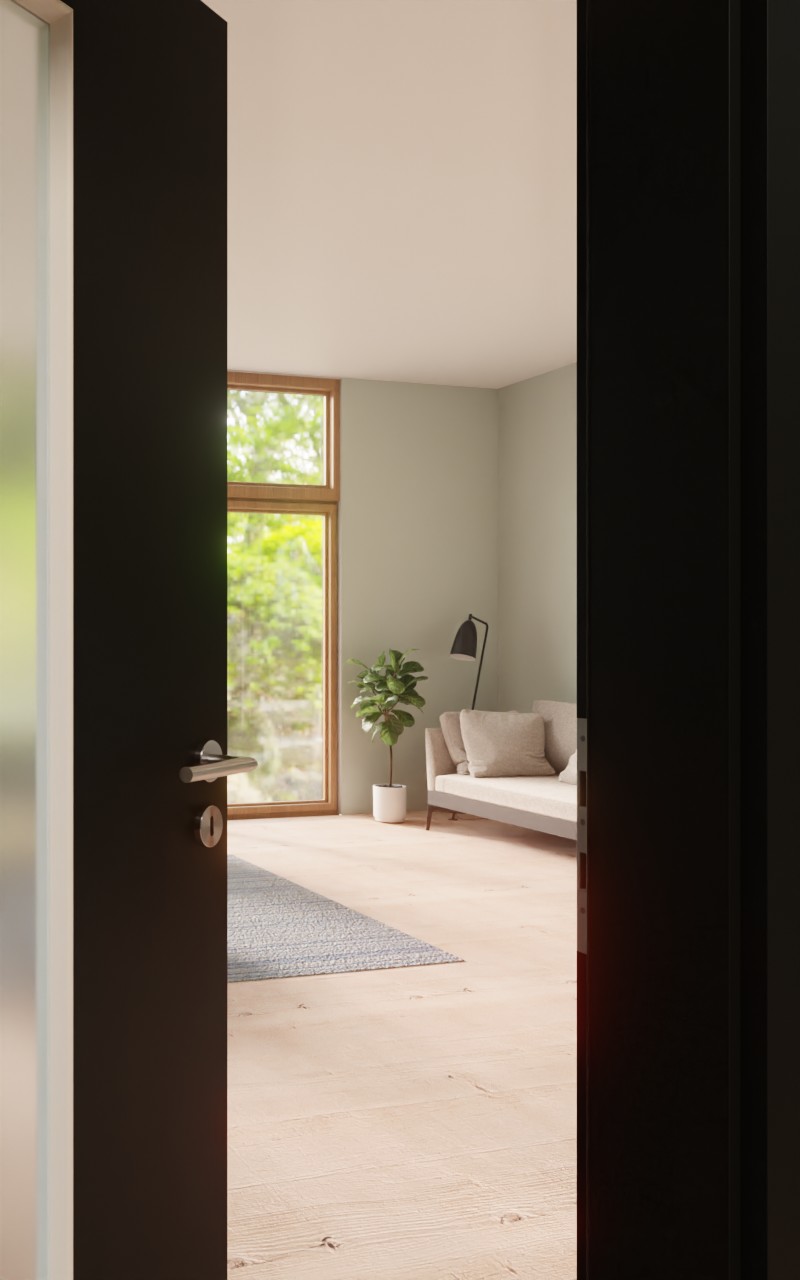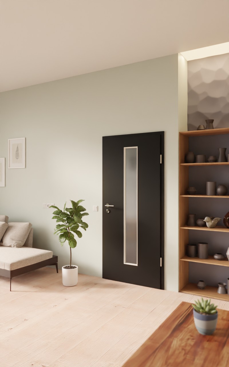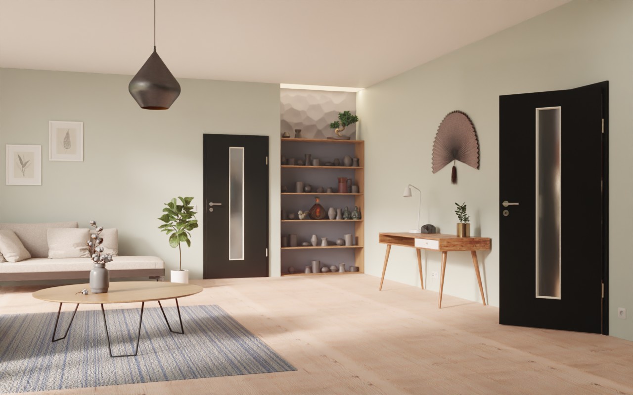 Drzwi wewnętrzne najwyższej jakości w dekorze HPL 0901-60 Black z pięknym przeszkleniem: