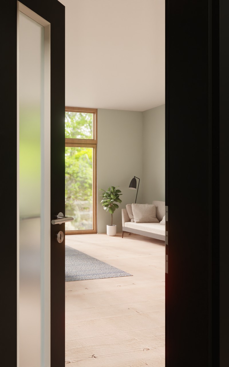 Atrakcyjna wewnętrzna drzwi w dekorze HPL 0901-60 Black z eleganckim przeszkleniem: