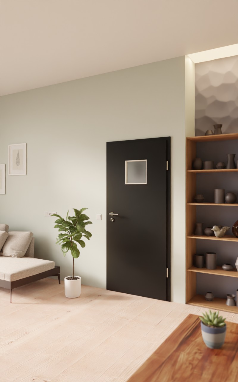 Wysokiej jakości drzwi wewnętrzne w dekorze HPL 0901-60 Black do pomieszczeń prywatnych lub biurowych: