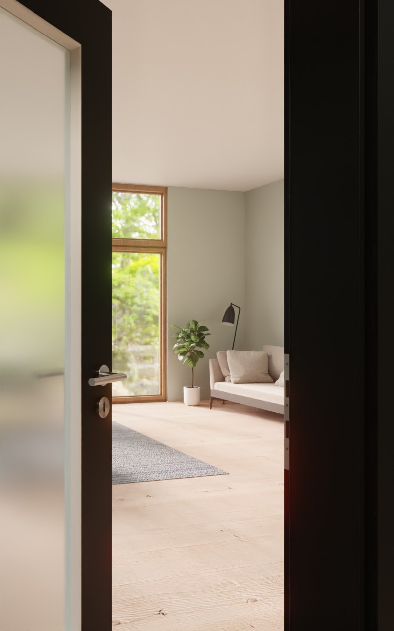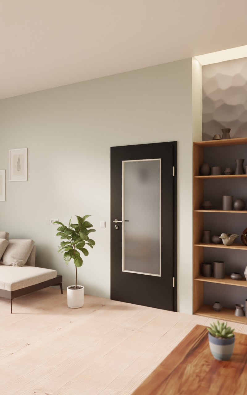 Stylowe drzwi wewnętrzne w dekorze HPL 0901-60 Black z pięknym przeszkleniem: