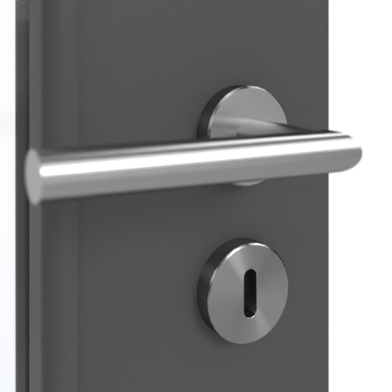 • Standardowe wykonanie kasety zamka: Zamek pokojowy BB: klasa 1, długość trzpienia 55 mm, listwa czołowa 20/235, kolor srebrny