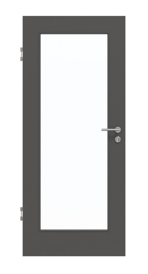 Dzięki eleganckiemu, ciemnemu antracytowemu odcieniu skrzydło drzwiowe nadaje Twojemu nowoczesnemu wnętrzu stylowy wygląd. Powierzchnia CPL tworzy przy tym imponujące kontrasty. Duże, prostokątne przeszklenie jest szczególnie korzystne w ciemnych pomieszczeniach.