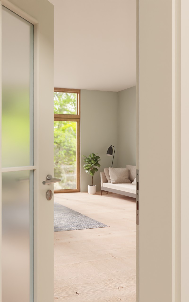 Nowoczesne przeszklenie i wysokiej jakości właściwości: Nowoczesny styl wnętrza zapewniają drzwi wewnętrzne LA-DIN-Sprosse SP0 w kolorze 9417-60 Snow White firmy Garant.