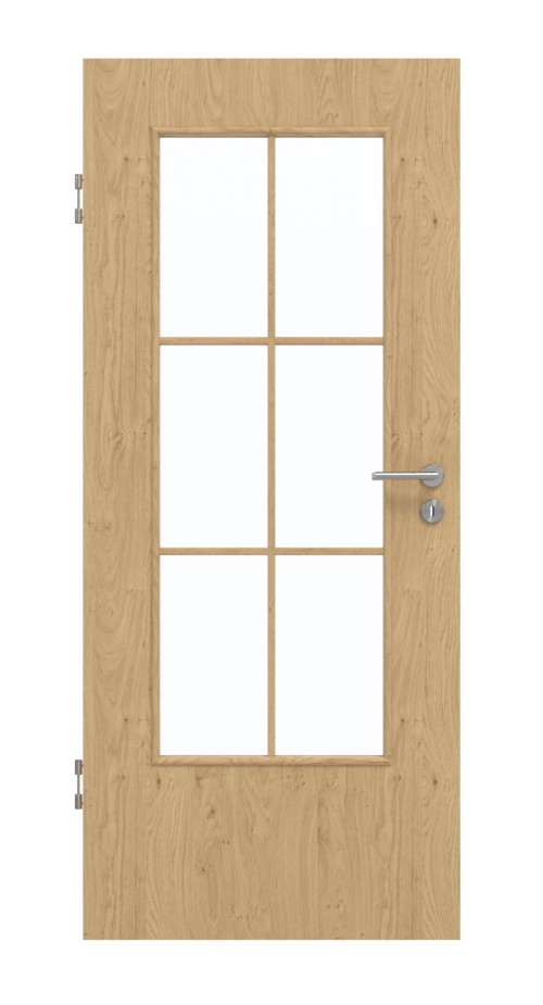 Dzięki żywej fakturze słojów i ciepłemu, brązowemu odcieniu dekor Authentic Asteiche wprowadzi do Twojego domu atmosferę przytulności i naturalności. Pomieszczenia, które zazwyczaj są ciemne, są bardziej doświetlone dzięki dużemu przeszkleniu. Delikatna rama szprosowa dzieli szkło na sześć równych części.