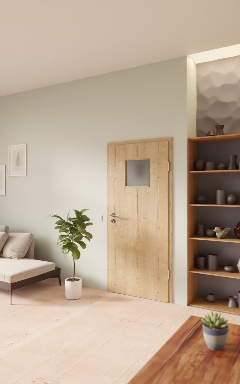 Ponadczasowe drzwi wewnętrzne w dekorze HPL Authentic Risseiche z eleganckim przeszkleniem: