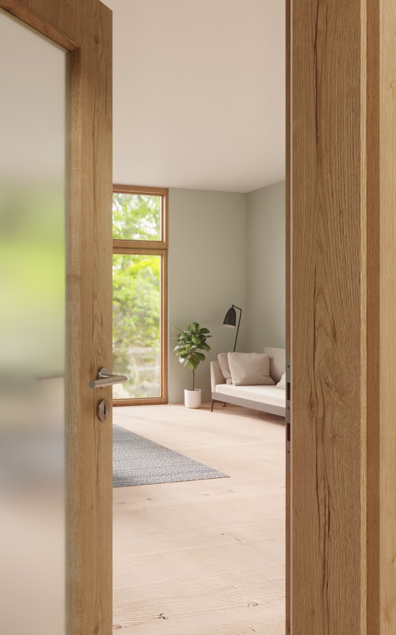 Wytrzymałe drzwi wewnętrzne w dekorze HPL Authentic Risseiche do pomieszczeń prywatnych lub biur: