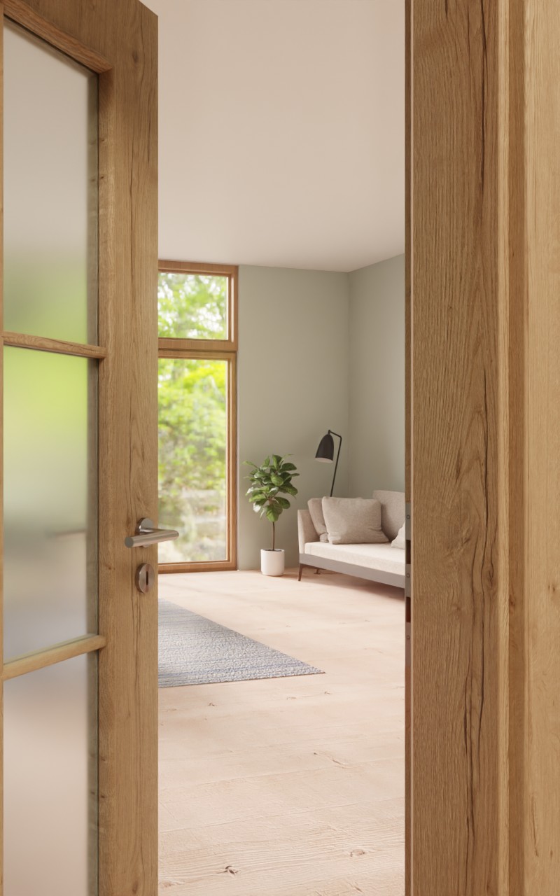 Dla jasnego i nowoczesnego domu: Indywidualny komfort jest zapewniony dzięki drzwicom wewnętrznym LA-DIN-Sprosse SP4 w autentycznym dębie rysowanym od Garant.