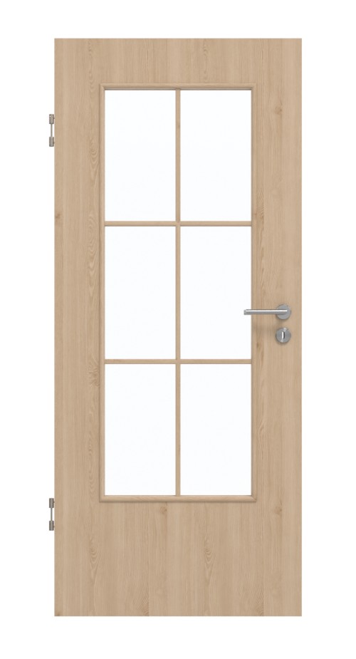 Dzięki delikatnym liniom i cieniowaniom dekor drewniany Authentic Achat wnosi do Twoich pomieszczeń naturalność i harmonię, które wyraźnie poprawiają samopoczucie. Dzięki dużemu przeszkleniu do pomieszczenia wpada dużo światła, co dodatkowo je rozjaśnia. Delikatne ramki dzielą szybę na sześć równych części.