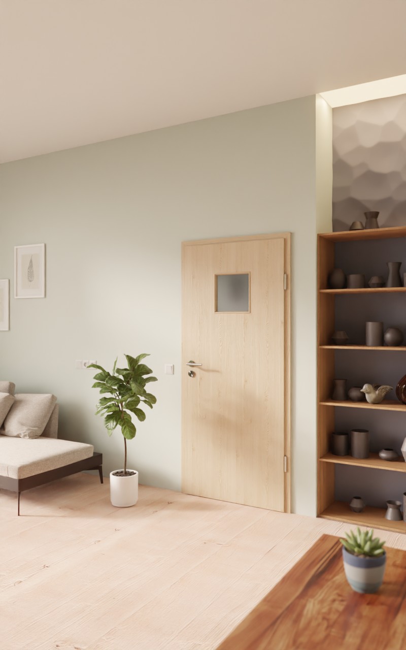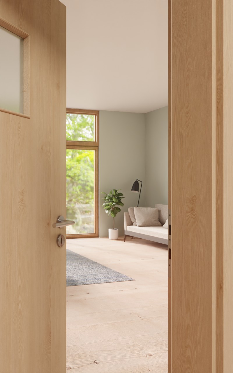 Wytrzymałe drzwi wewnętrzne w dekorze HPL Authentic Achat z eleganckim przeszkleniem:
