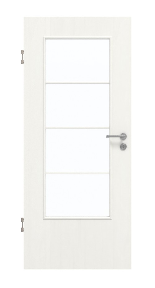 Delikatne podłużne linie w połączeniu z białą kolorystyką nadają dekorowi Authentic Bianco charakterystyczny wygląd. Nowoczesny wygląd zapewnia duży przeszklony fragment, który jest harmonijnie podzielony poziomymi szprosami.
