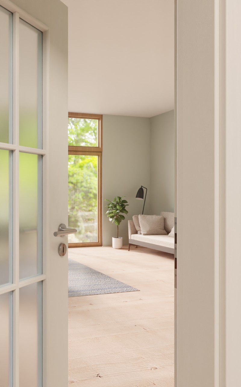 W skrzydle drzwiowym o grubości 40 mm zastosowano płytę wiórową pełną w rdzeniu oraz ramę z płyty MDF. Ponieważ krawędzie skrzydła drzwiowego pokryte są niezawodną powłoką, nie musisz martwić się o uderzenia.