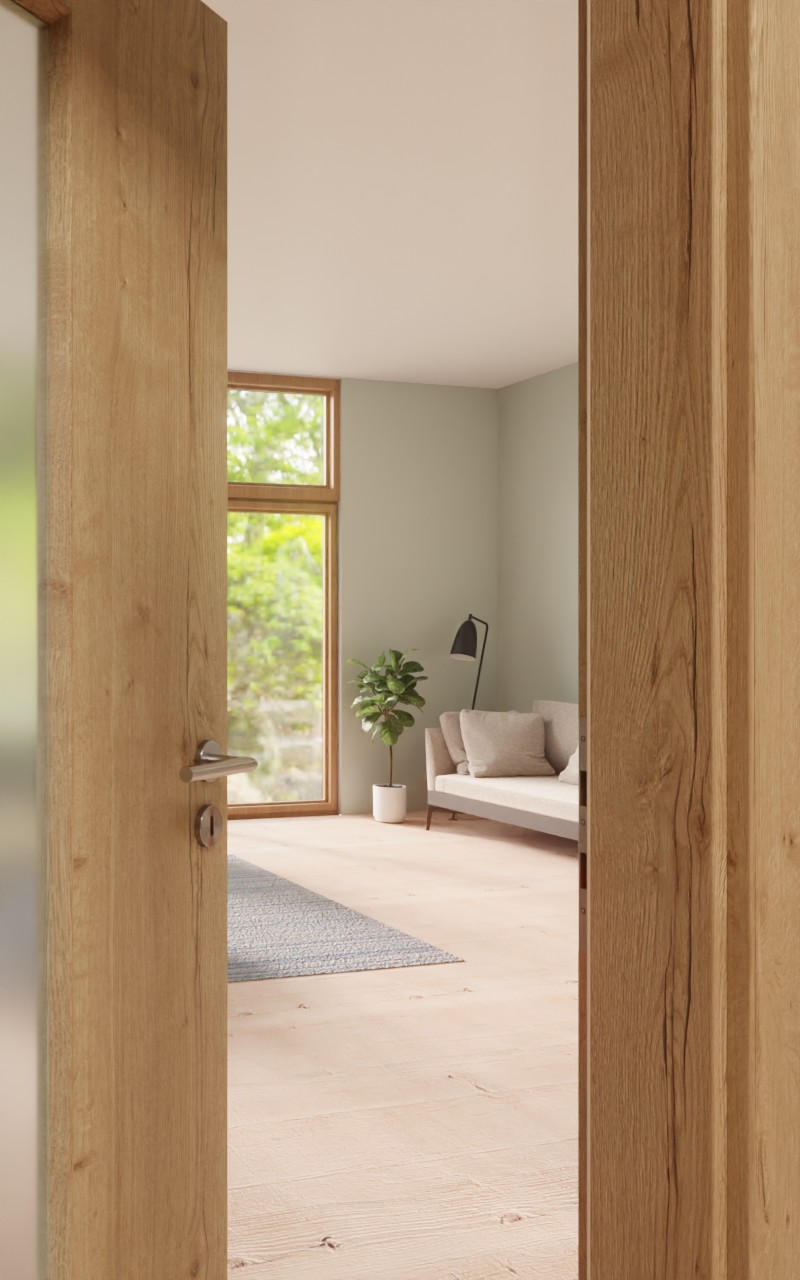 Dla wspaniałej atmosfery wnętrza: Twoje indywidualne projektowanie przestrzeni życiowej zostanie dopełnione przez drzwi wewnętrzne LA-4 w autentycznym dębie z rysami od Garant.