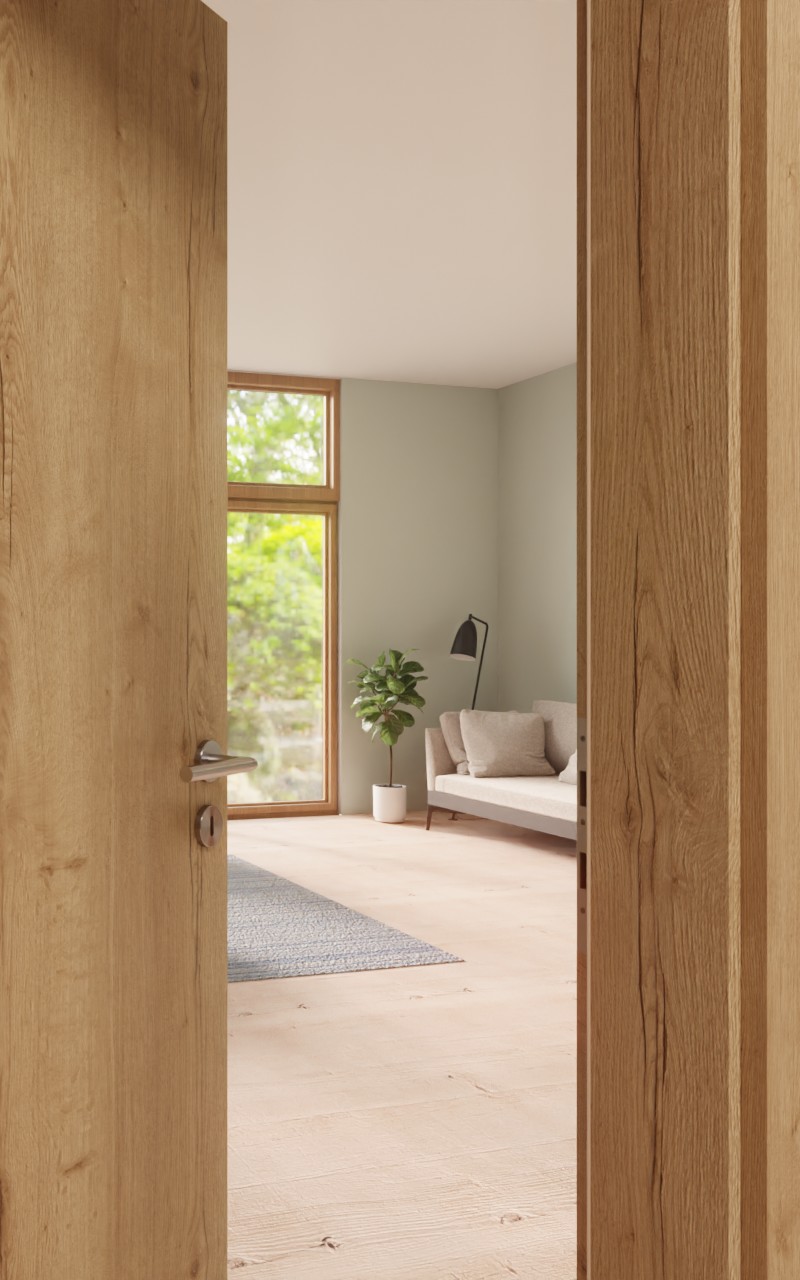 Rama z płyty MDF oraz warstwa środkowa z litej płyty wiórowej zapewniają skrzydłu drzwiowemu stabilność. Odpowiada klasie obciążenia M i może być stosowany zarówno w pomieszczeniach prywatnych, jak i biurowych.