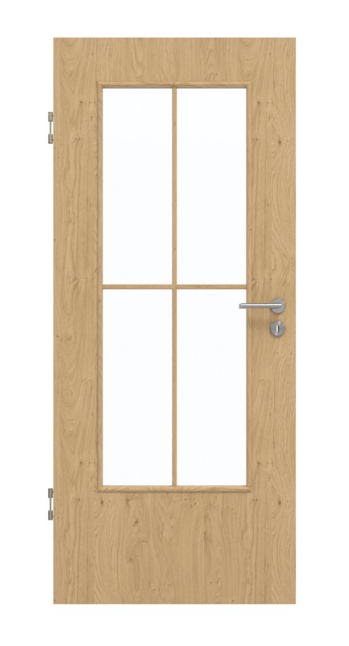 Skrzydło drzwiowe ma grubość 40 mm i jest wyposażone w stabilizującą ramę MDF oraz płytę wiórową pełną w rdzeniu. Niezawodne powlekanie krawędzi zapewnia stabilność na brzegach.