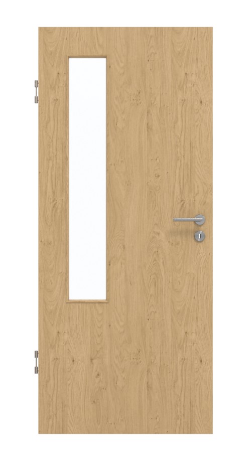 Drzwi wewnętrzne odporne na zarysowania w dekorze HPL Authentic Asteiche z eleganckim przeszkleniem: