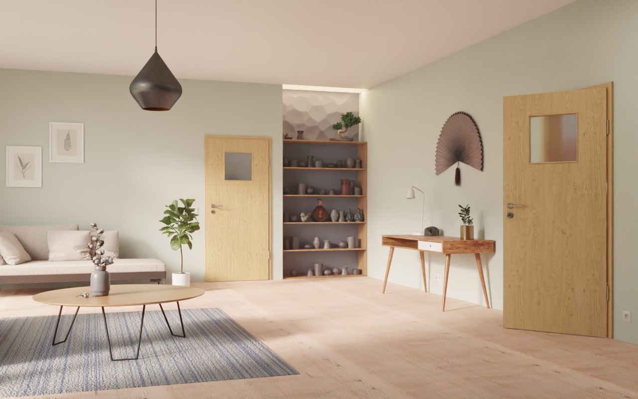Odporne na ścieranie drzwi wewnętrzne w dekorze HPL Authentic Asteiche z atrakcyjnym przeszkleniem:
