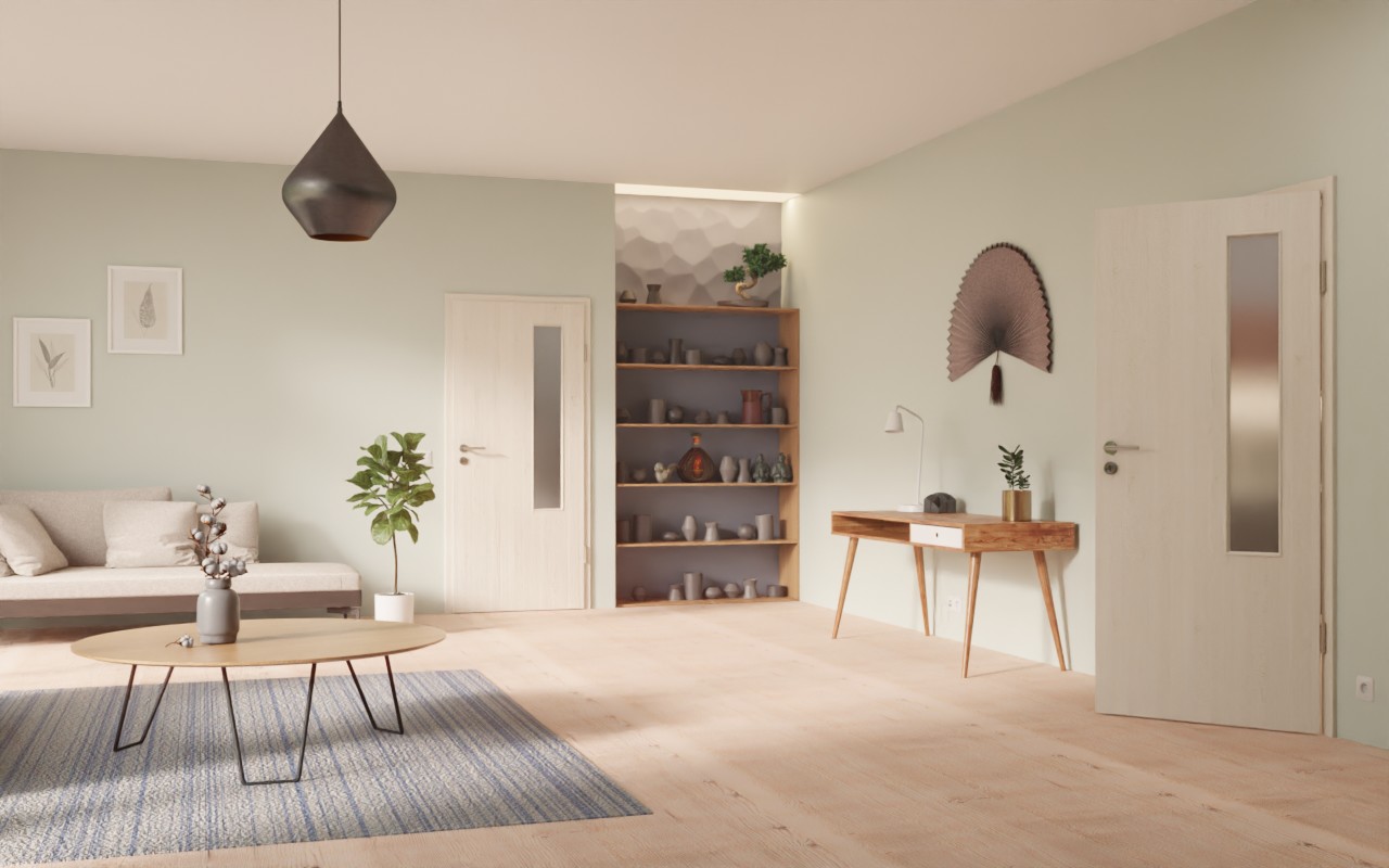 • Krótkie, wąskie przeszklenie w górnej części drzwi