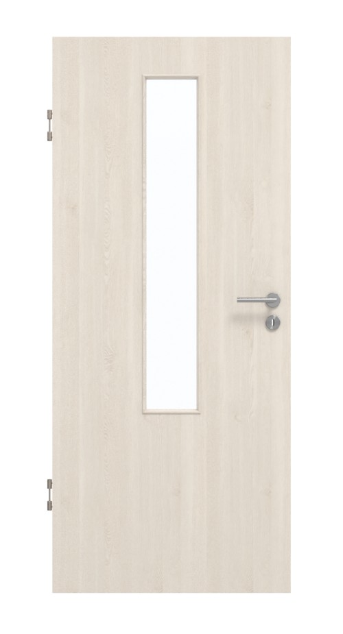 Praktyczne drzwi wewnętrzne w dekorze HPL Authentic Perl z eleganckim przeszkleniem:
