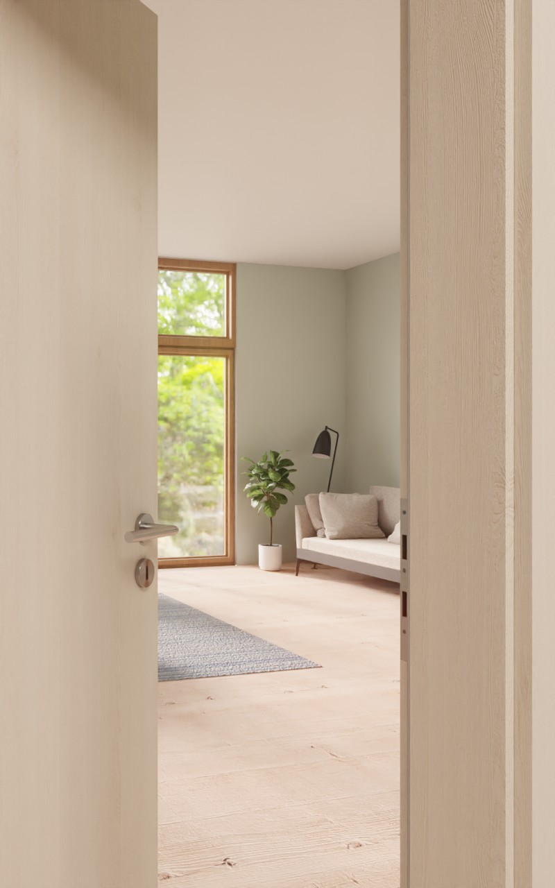 Rama z płyty MDF oraz warstwa środkowa z litej płyty wiórowej zapewniają skrzydłu drzwiowemu stabilność. Odpowiada klasie obciążenia M i może być stosowany zarówno w pomieszczeniach prywatnych, jak i biurowych.