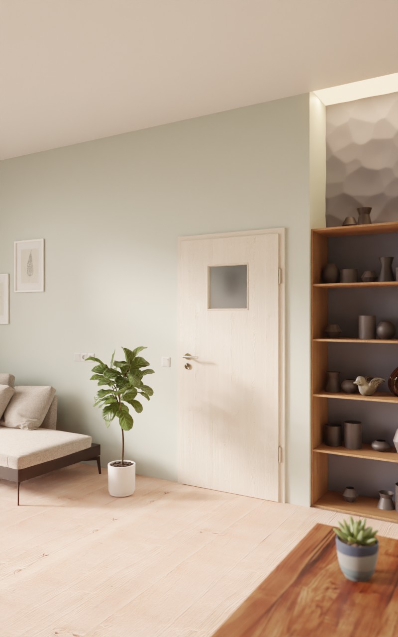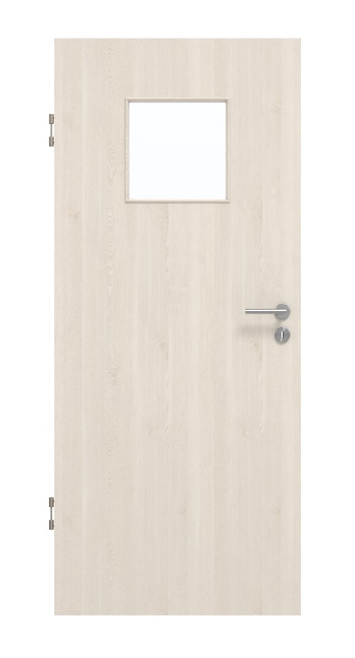 Kwadratowe przeszklenie zdobi górną część skrzydła drzwiowego. Jasna kolorystyka oraz bogate w detale, subtelne słoje charakteryzują dekor Authentic Pearl. Dzięki swojej wytrzymałości łatwy w pielęgnacji dekor HPL jest odporny na ścieranie i zarysowania.
