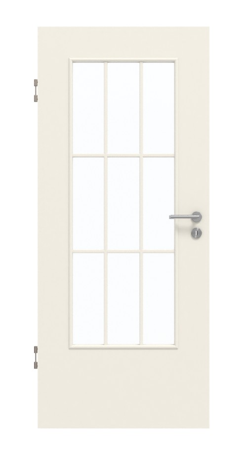 Dzięki białej kolorystyce model ten z łatwością komponuje się z każdym wystrojem wnętrza. Dzięki eleganckiej ramie z szprosami w wycięciu szklanym powstaje dziewięć równych pól.