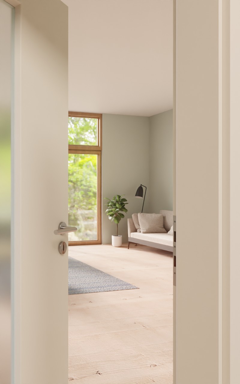 Stylowa drzwi wewnętrzne w dekorze HPL białym lakierze 9010 do przestrzeni prywatnej lub biura: