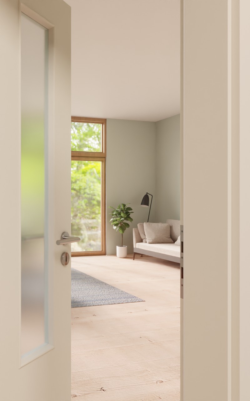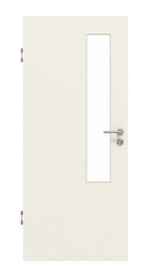 Zapraszające drzwi wewnętrzne w dekorze HPL białym lakierze 9010 z eleganckim przeszkleniem: