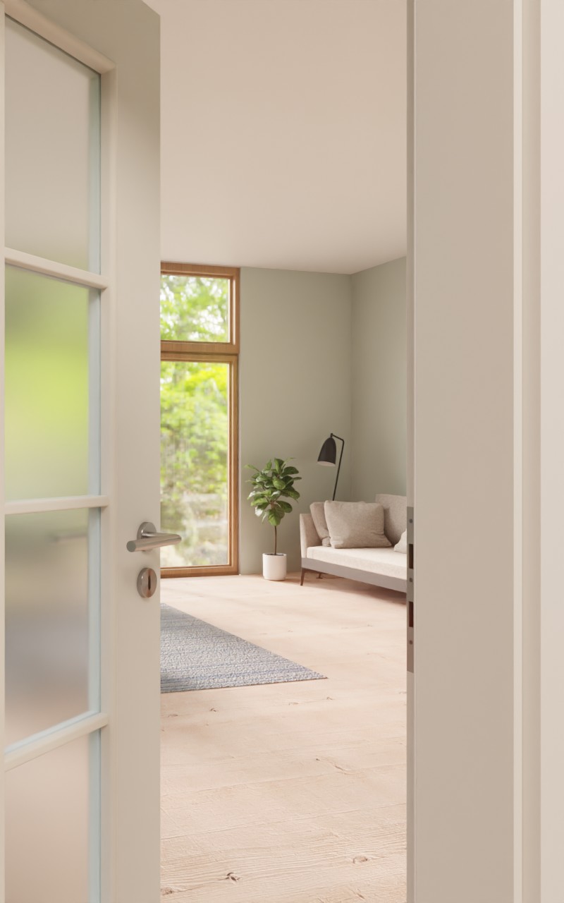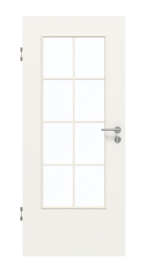Wysokiej jakości drzwi wewnętrzne w dekorze HPL białym lakierze 9016 z atrakcyjnym przeszkleniem: