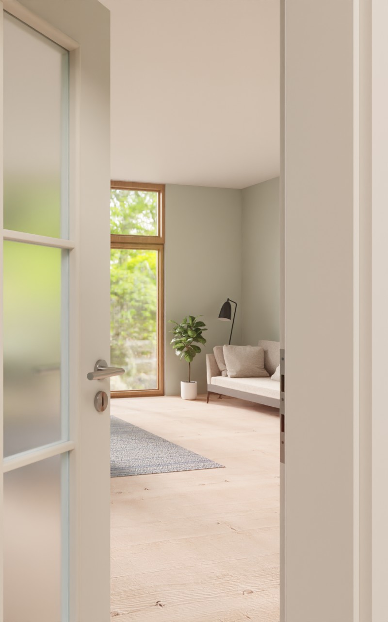 Ponadczasowe drzwi wewnętrzne w dekorze HPL białego lakieru 9016 do przestrzeni prywatnej lub biura: